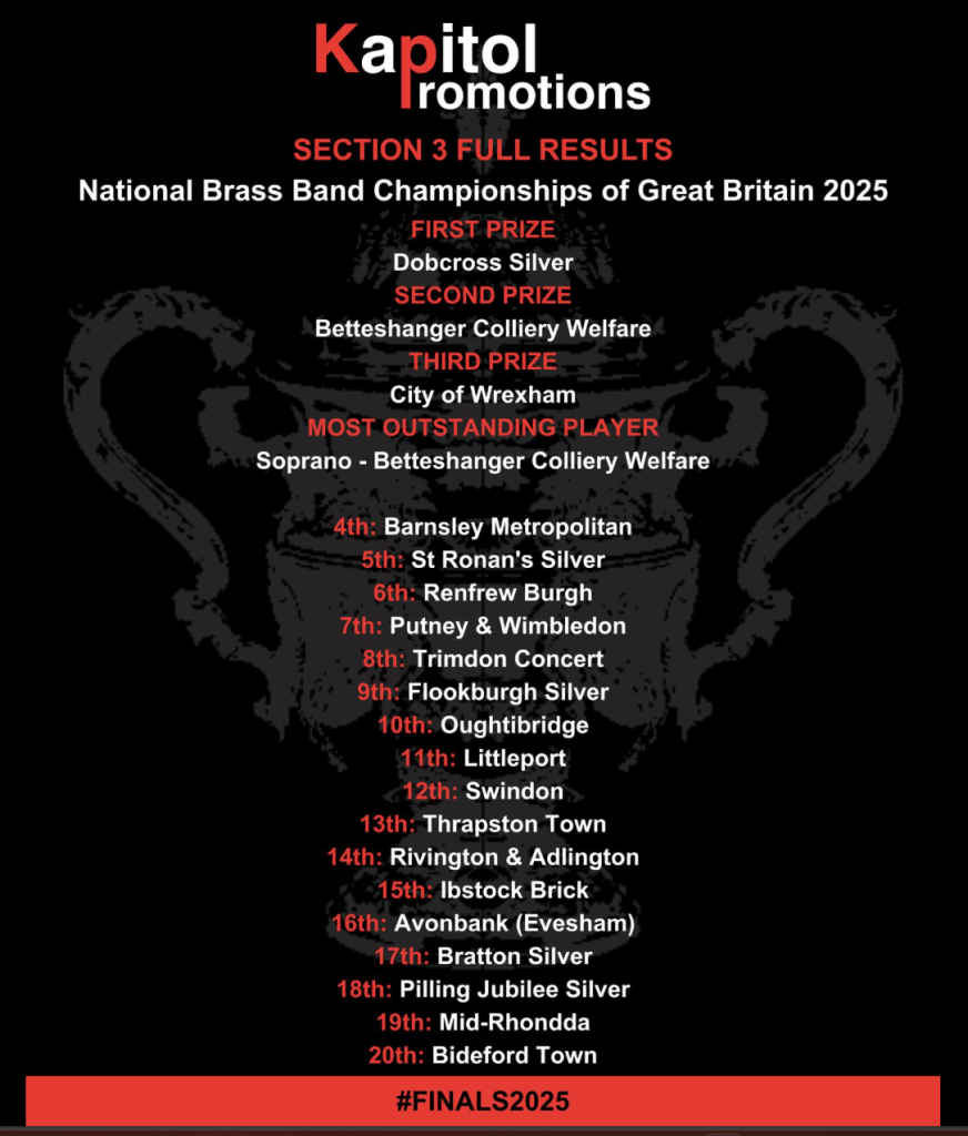 The Silver Band are celebrating after being crowned Third Section National Champions at the National Brass Band Championships of Great Britain, held at The Centaur, Cheltenham on Sunday 14 September.